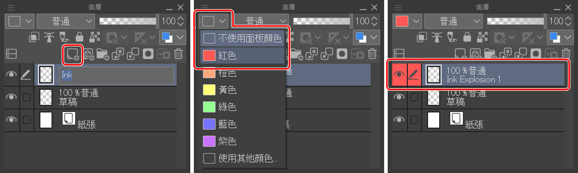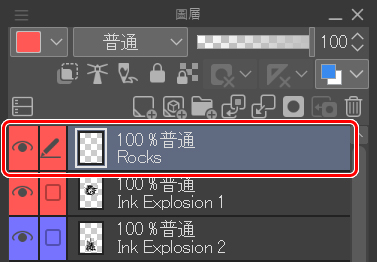 完成草圖後,在草稿圖層的頂部建立一個新圖層,將其重新命名為Ink Explosion 1,並設定為紅色,以便在後續步驟中快速找到圖層。在這一個圖層上,我會進行描線的作業,幫火焰和煙霧增加份量感。