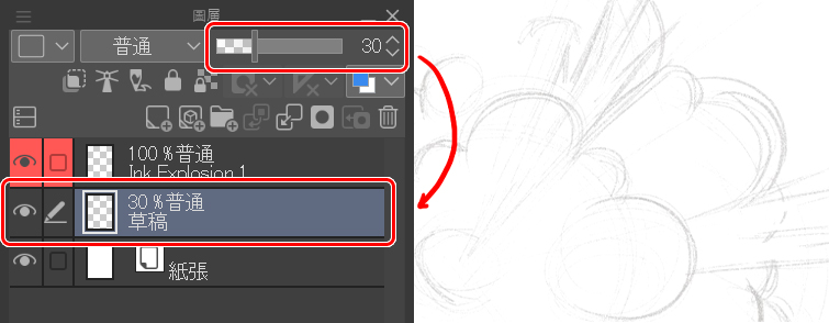 如果草圖的線條太粗或會分散你的注意力,請降低圖層的不透明度。