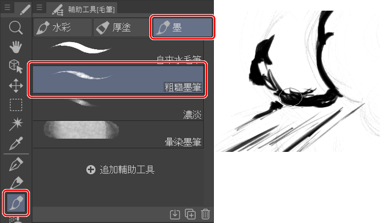在新圖層中,我使用中尺寸的粗糙筆刷,以黑色開始繪製爆炸的份量感。