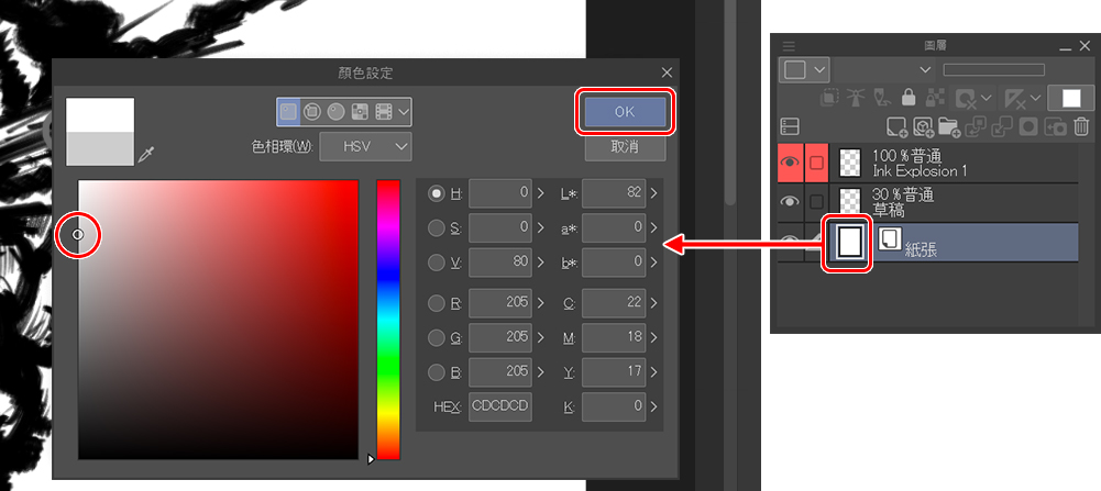 我點擊縮圖,把畫布的背景顏色更改為灰色,這讓我能在下一個步驟中添加白色。