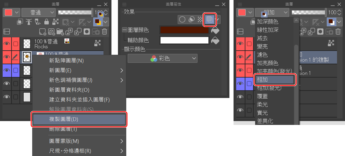 接下來,複製圖層(單擊右鍵>複製圖層)並套用主顏色#481C08和輔助色#FFF5DA。最後將圖層的混合模式設定為相加。