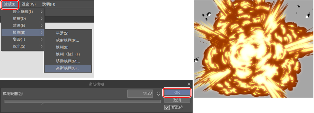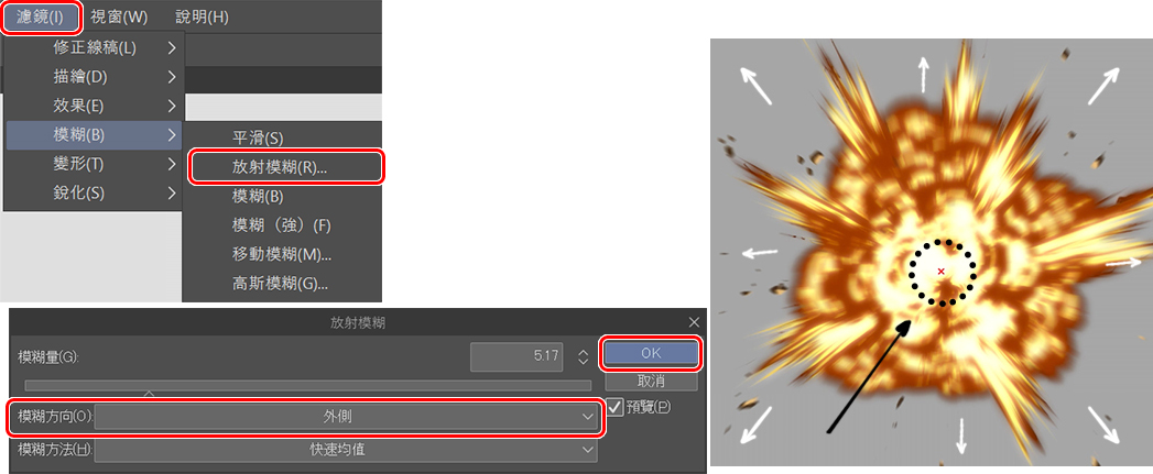 自由繪製各種爆炸特效的方法【閃光・模糊加工】