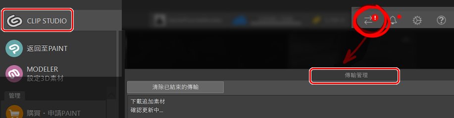 Clip Studio視窗將自動開啟。如果原先尚未登入,在進行登入之後,傳輸管理視窗中會出現通知,可以看到3D素材已成功下載。