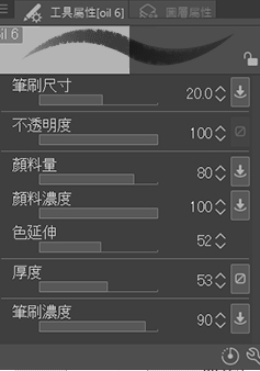 我使用的筆刷是多年前下載,並經過設定直到符合需求的油彩筆刷。強烈建議大家修改筆刷設定,找到真正適合自己的風格。無論如何,請牢記我接下來的示範,理解該如何完成這種風格的筆刷設定。我使用的不是自製筆刷,建議大家在Clip Studio Assets上尋找類似的素材。