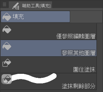 - 使用填充工具並選擇「參考其他圖層」,這樣就可以填充已經完成的線稿。