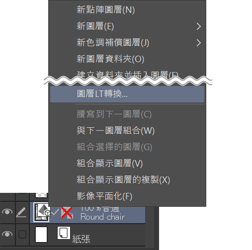 - 右鍵單擊3D物件圖層,並選擇圖層LT轉換。