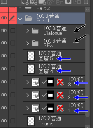 同時也有不需要邊框的分鏡用一般圖層。