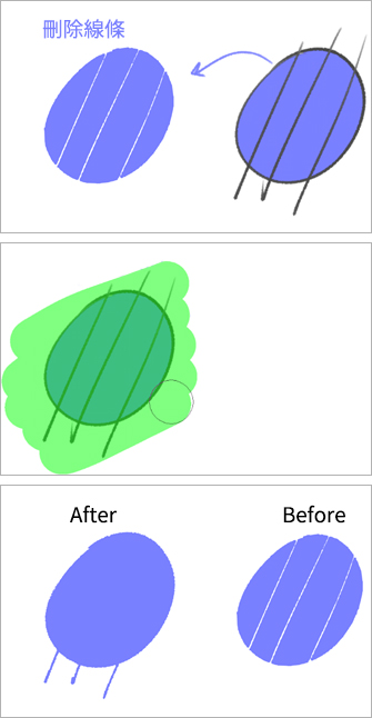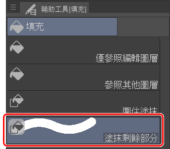 - 如果填充區域有間隙:像使用一般筆刷般,用「塗抹剩餘部分」來進行作業。