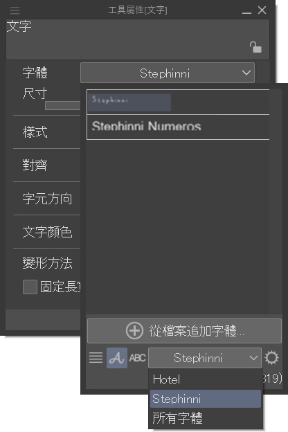- 設定文字工具:如果你和我一樣會使用不止一種字體,可以為它建立一個選項。因為我會使用兩種字體,一種用於文字,另一種用於數字,所以我要建立一個選項。