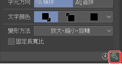 按下設定圖示。接著會顯示輔助工具群組,你可以設定想預設的文字間距、樣式、變形……所有選項都能進行調整並保存為預設設定。