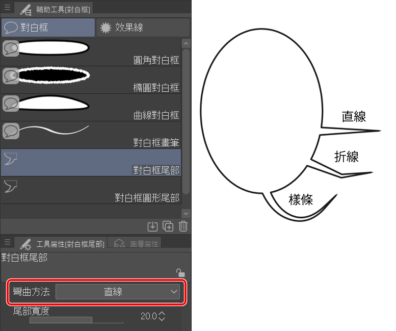 為對白框尾部選擇正確的彎曲方法。我總喜歡選擇樣條效果。