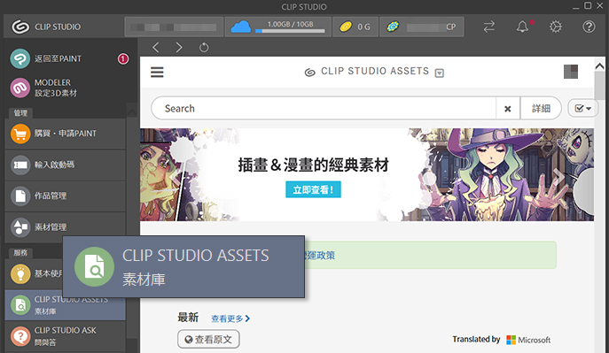 我強烈建議在Clip Studio Assets上尋找額外的材質、筆刷、工具和其他素材,你會發現數以萬計的資源都適用於漫畫,還能提升作業效率。