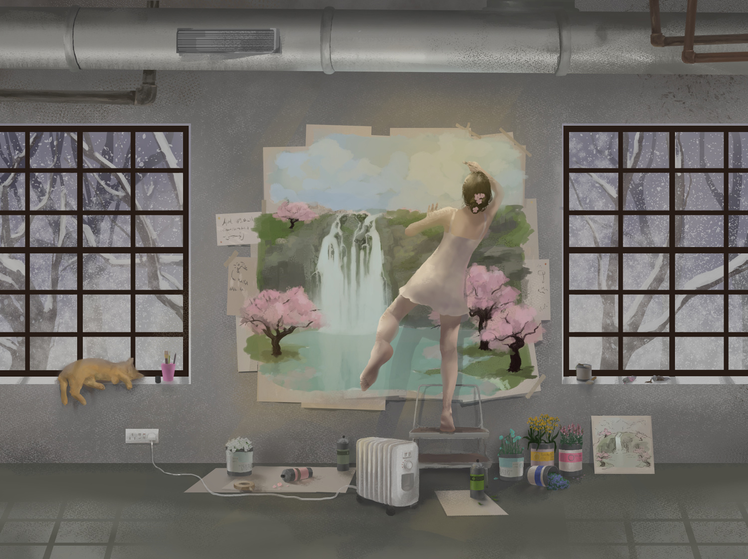 我在繪製漫畫時通常會從詩歌中獲得靈感啟發,但因為有點厭倦了取自人類或真實存在場所的設定跟角色,所以這次我選擇了視角雖小卻讓我充滿興趣的老鼠。決定了角色後,我讓他披上了毛衣和布毯,離開舒適的家和面臨死亡的畏懼,這兩種是大家都會經歷的恐懼。
