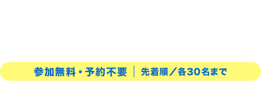 | 定員 | 各回30名(予約不要、先着順) | 受講料 | 無料 * |