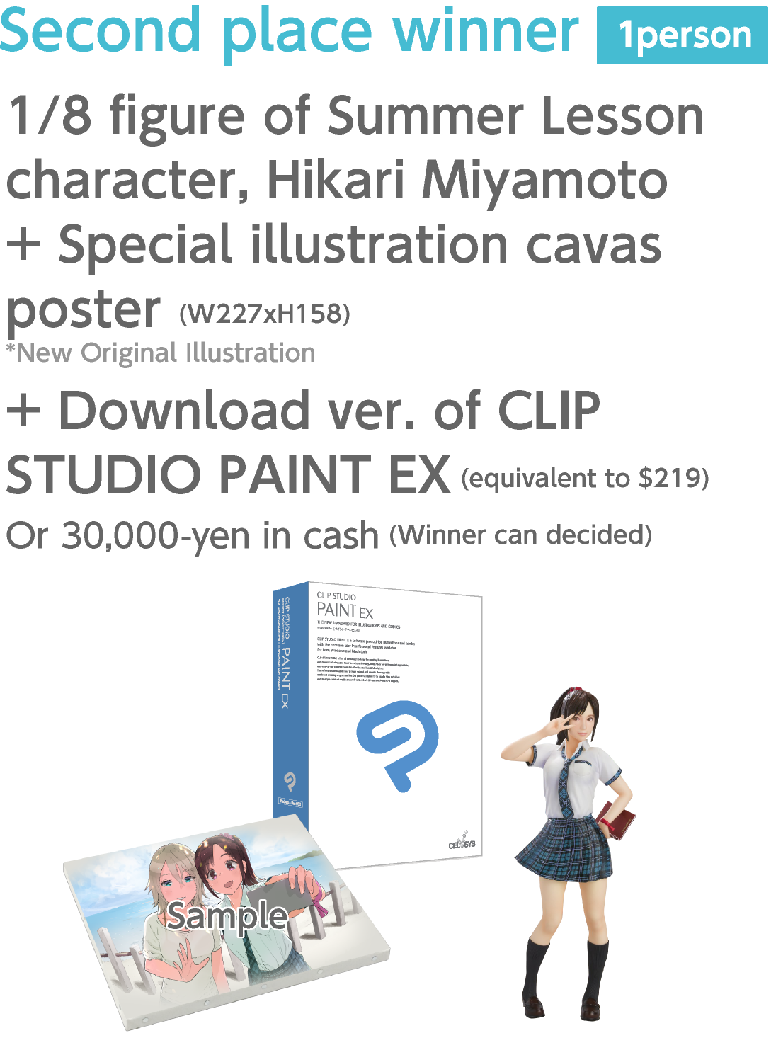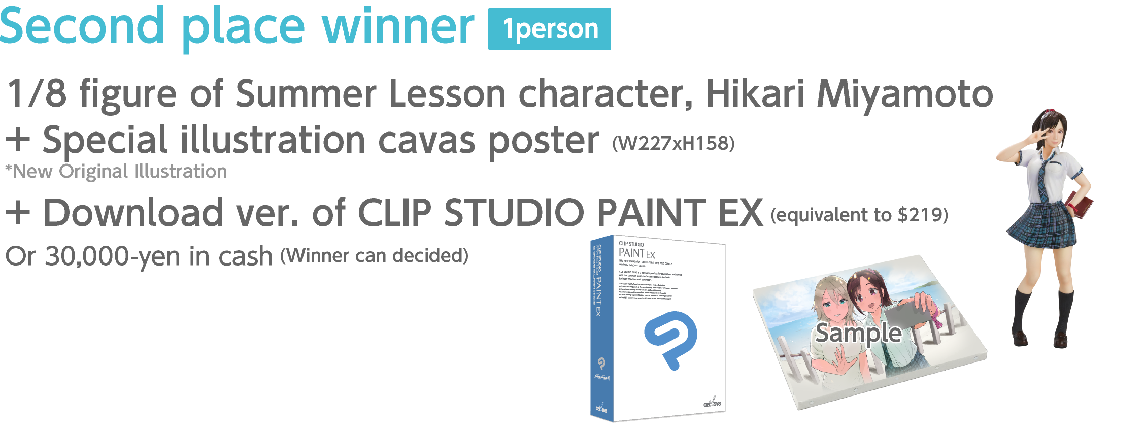 Amongst the applicants, this illustration had the most "unique perspective". Allison in the sunset with her blue shining eyes seemed very mysterious. It feels like it's a bit different from the original "summer lesson" world, but at the same time, shows another side of her, making it attractive.