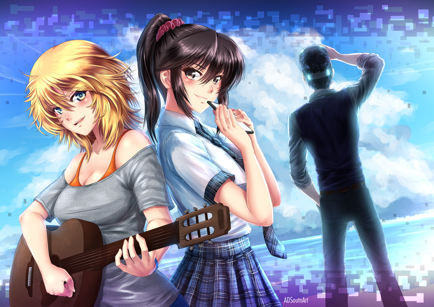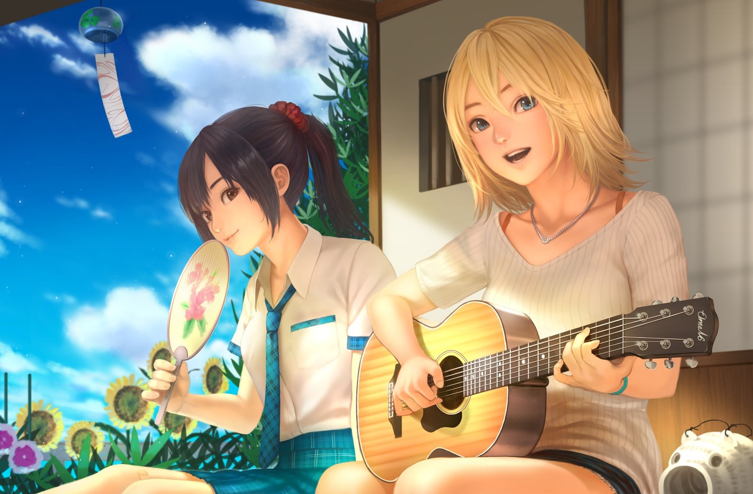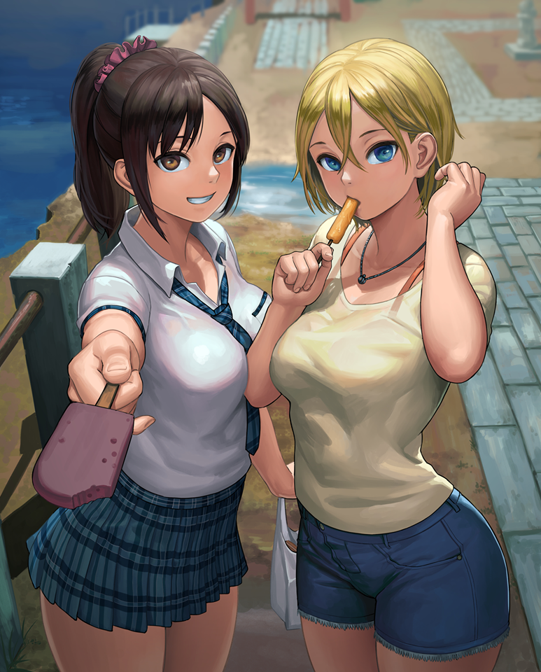 From their expressions, you can really see that they are enjoying summer. I love your attention to detail, it can be seen in the way you drew the clothing and the softness of their skin and hair.