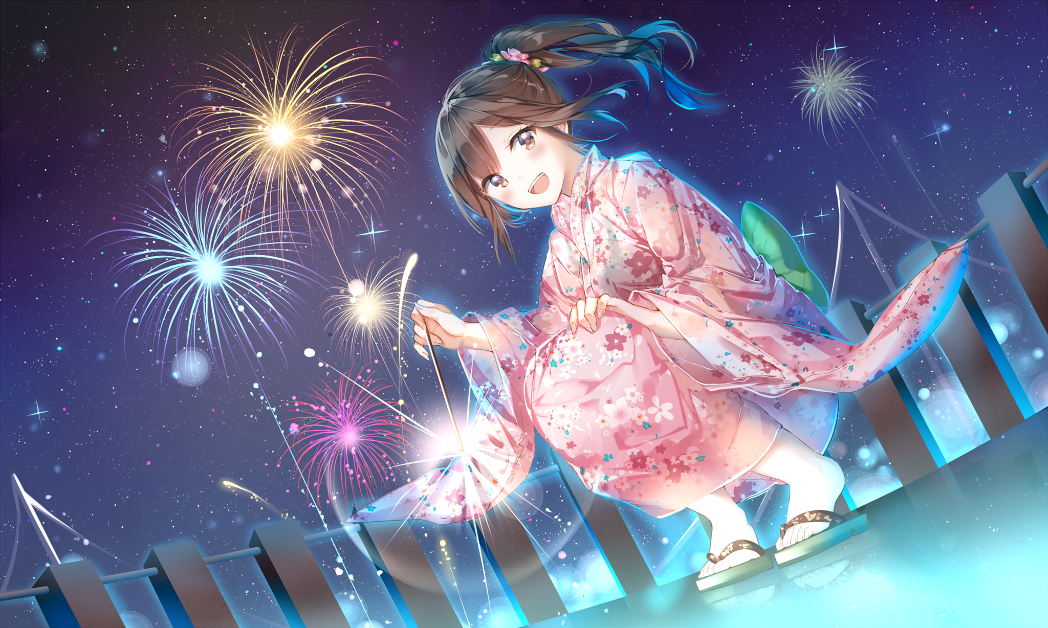 Though it is the same fireworks scene in the game, it feels like a totally different perspective. It feels like this piece of illustration is perfected and that can it be used as it is into a poster.