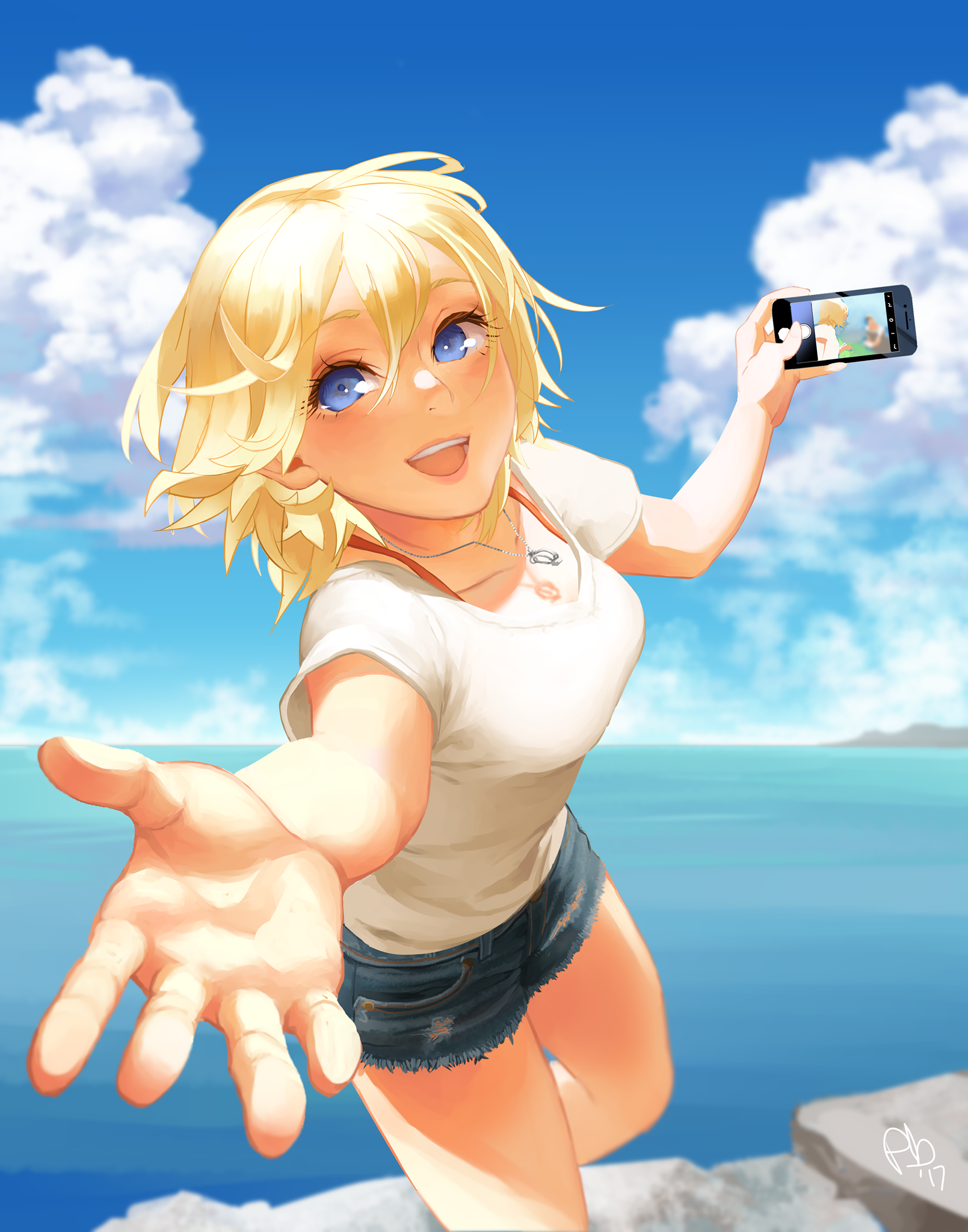 Personally, I really love this picture. The feeling of the colors, along with the skill of drawing the fluidity in the waves and the clouds, the atmosphere feels as if the two of them are inviting the viewer into the `Pictured World`. As an illustration for a VR-game it makes your heart pound.