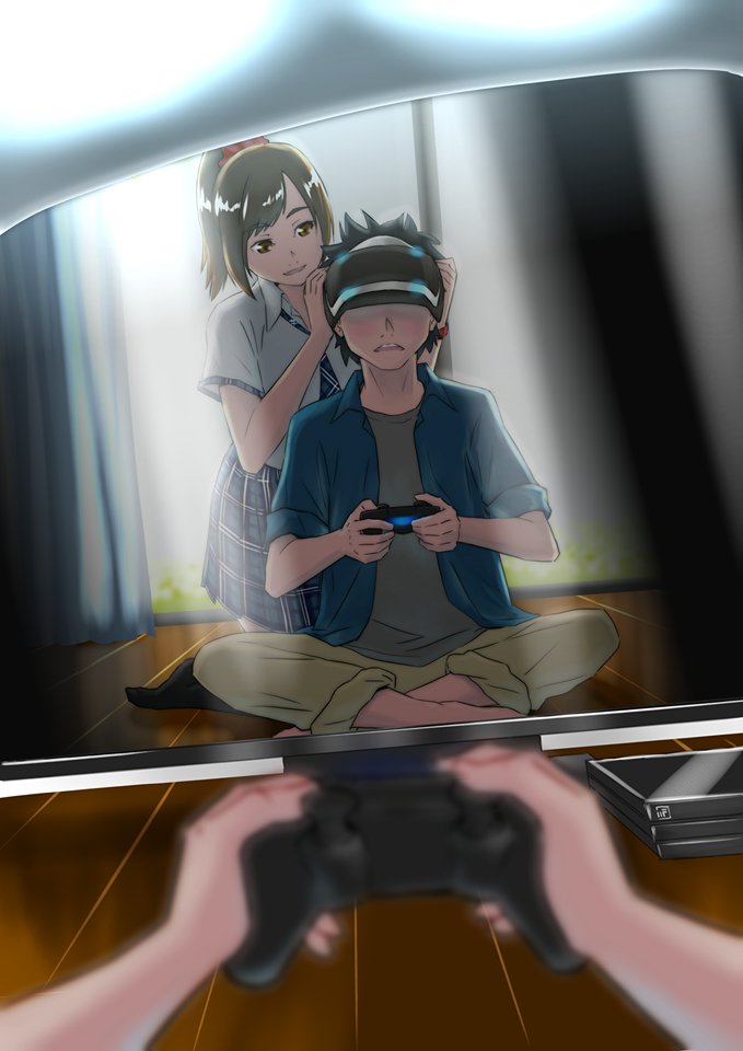 I wonder if among all the entries this is the coolest illustration of the tutor (player). (laughs) The relatioship of both characters and the player as the tutor, is something that can't be seen in the VR game "Summer Lesson", however, a glimbs of this dramatic world of "Summer Lesson" can be seen in this image.