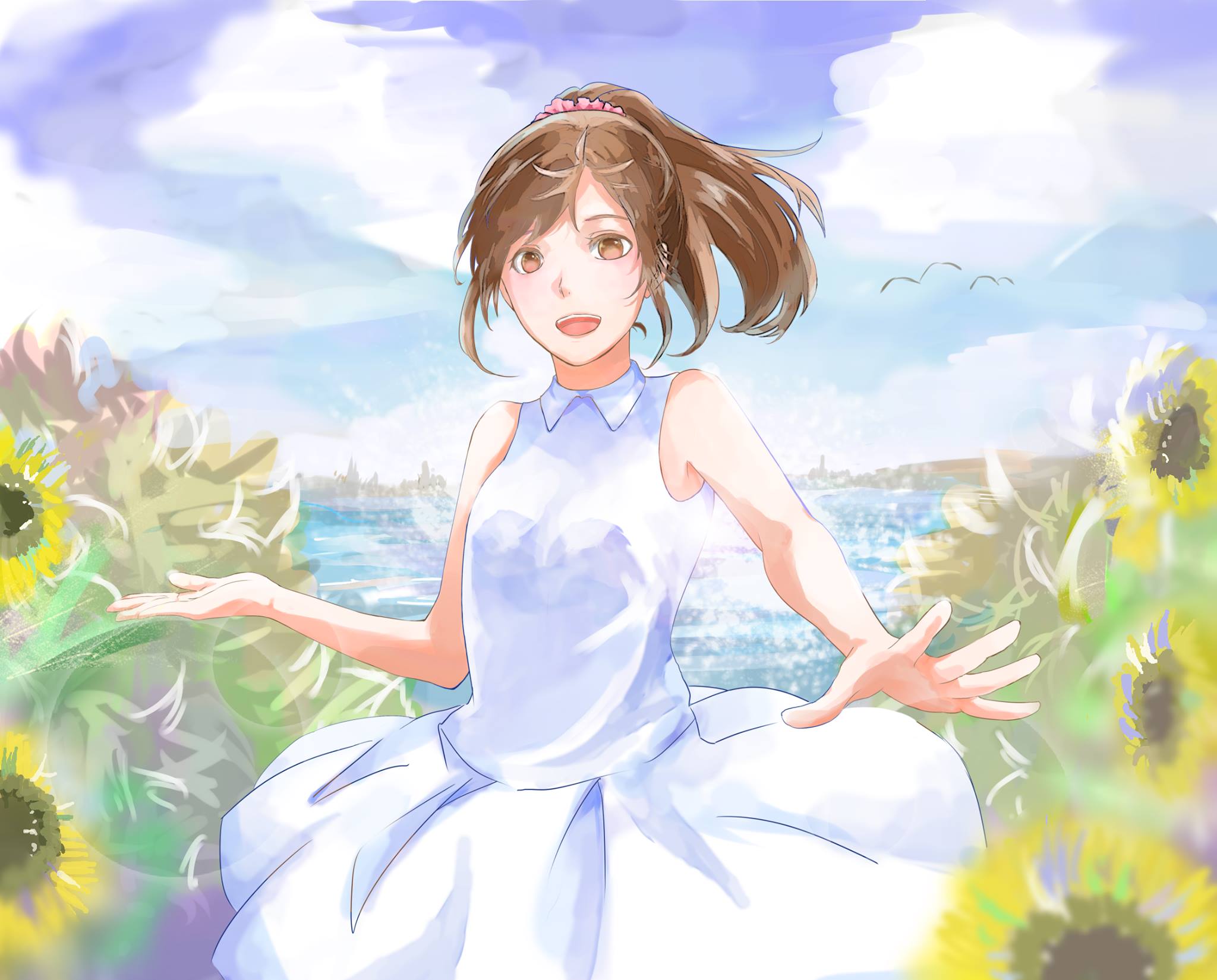 I can really feel the warmth of a summer breeze from each gentle brush stroke. You have a unique painting style, no wonder so you’re so popular. The characters’ expressions are superb and the way you describe the 3D in-game world of Summer Lesson captivates people who have or even haven’t played the game.