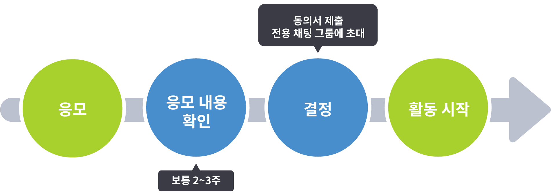 ※ 응모부터 선정까지 최장 3주일 정도 시간이 소요됩니다.