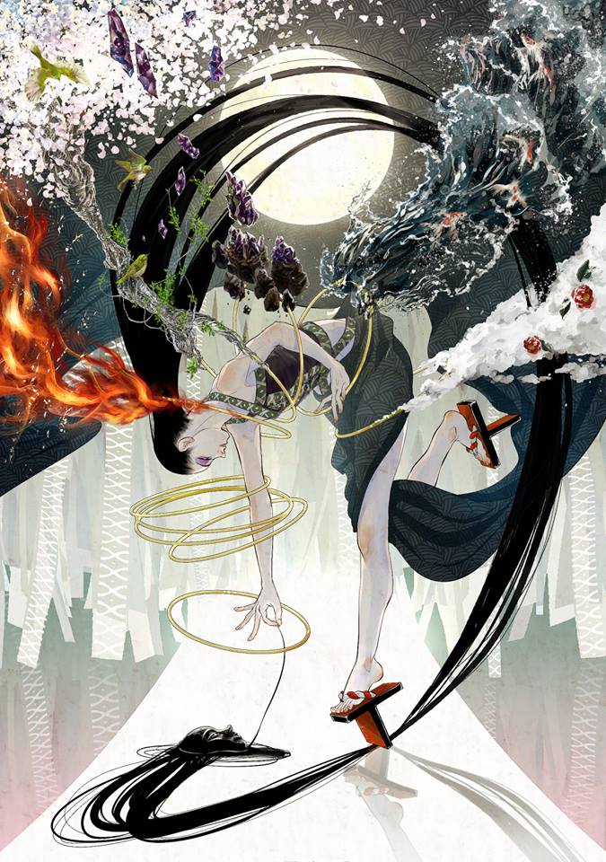 全体的に和のテイストで構成されていて、不思議な構図が見る側の興味を引きつけます。モチーフの組み合わせ方や配色、余白の取り方にもセンスを感じました。