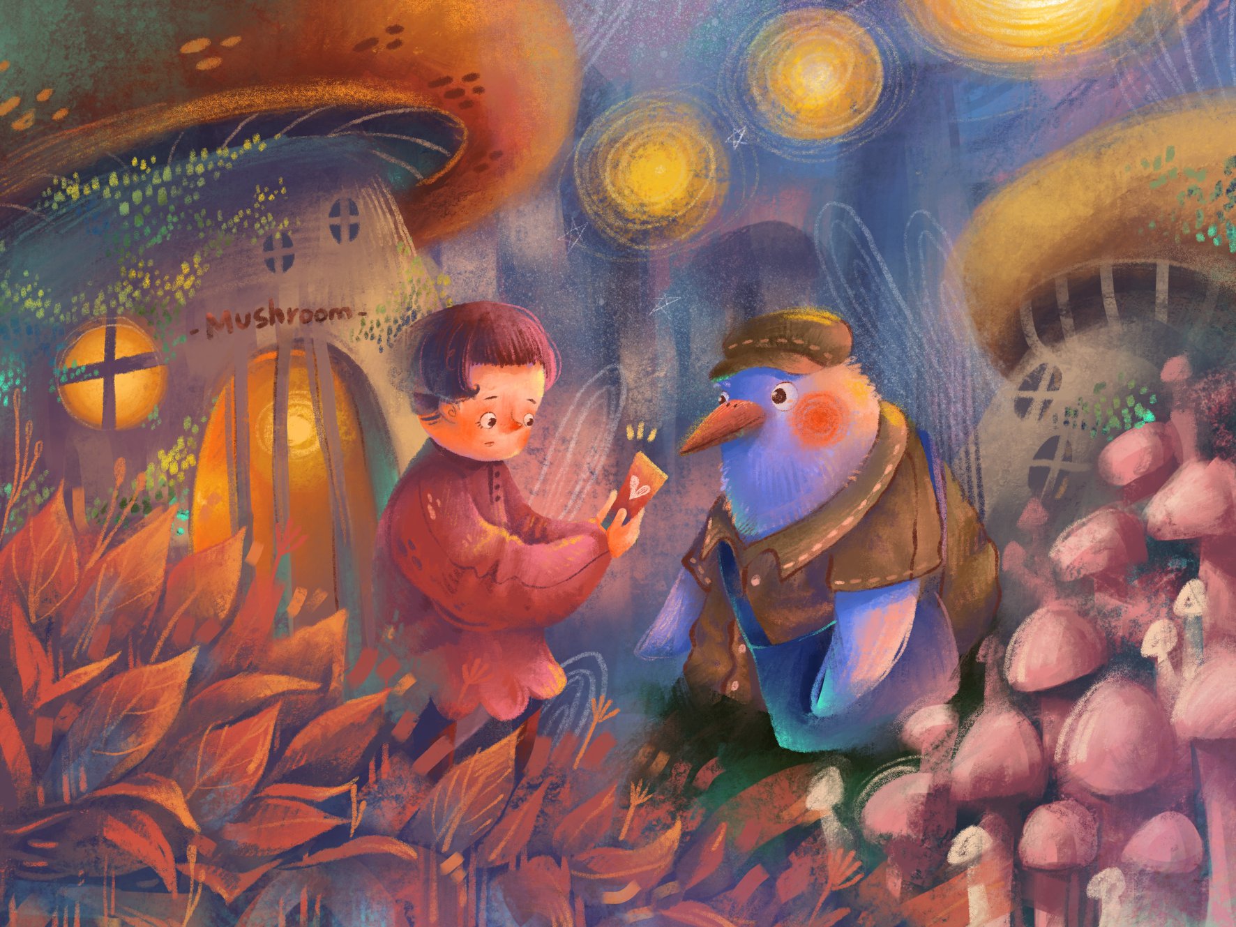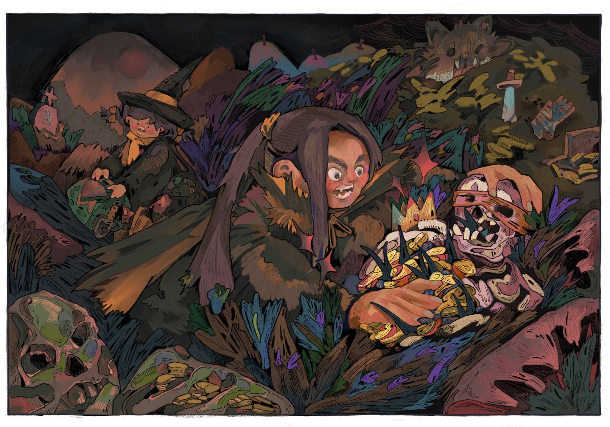 この絵には神秘的な魅力があり、見た瞬間から目を惹かれました。豊かなディテールや全体に散らばっている興味深い生物はもちろんのこと、巧妙な焦点と導線の利用で瞬時にストーリーに引き込まれます。この絵を見る度、新しいディテールが見つかります。