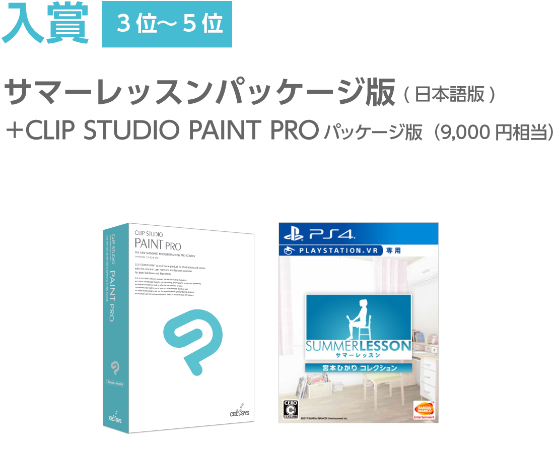 PlayStation®VR用ゲーム”サマーレッスン”のヒロイン”宮本ひかり”と”アリソン・スノウ” 。教え子である いずれかのキャラクターと、家庭教師であるあなたとの「コミュニケーション」をテーマにしたイラストまたはマンガを募集します。もちろん2人とも登場させても構いません。ゲームをプレイしたことのある人もない人も、みんなでコンテストに参加しよう!