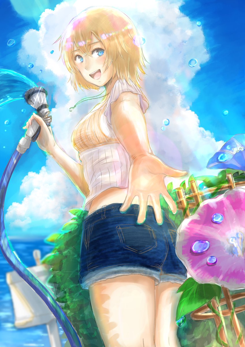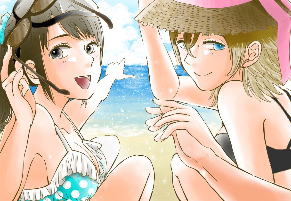 「健康美にあふれる二人の夏の一幕、といった雰囲気で、色づかいが明るくて元気なので、見ていて気分が明るくなりますね。ひかりちゃんの表情が、彼女の性格をマンガ的に表わしていて良いです」