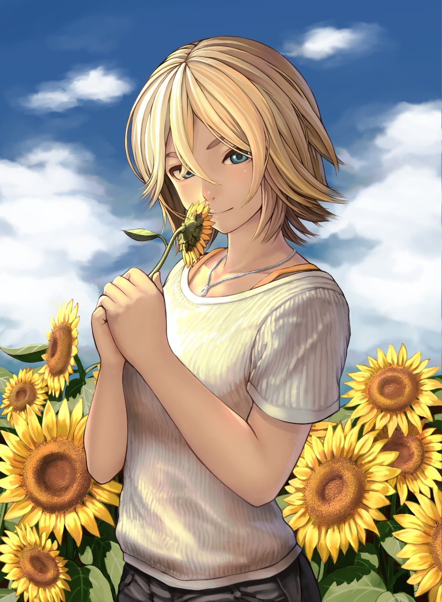 「ひまわりの配置や人物構図のせいか、クラシックな印象を受けて面白いですね。アリソンちゃんの可憐な雰囲気が、ひまわりの印象と対比されて浮き出てきています。この金髪の塗り方も面白いですね」