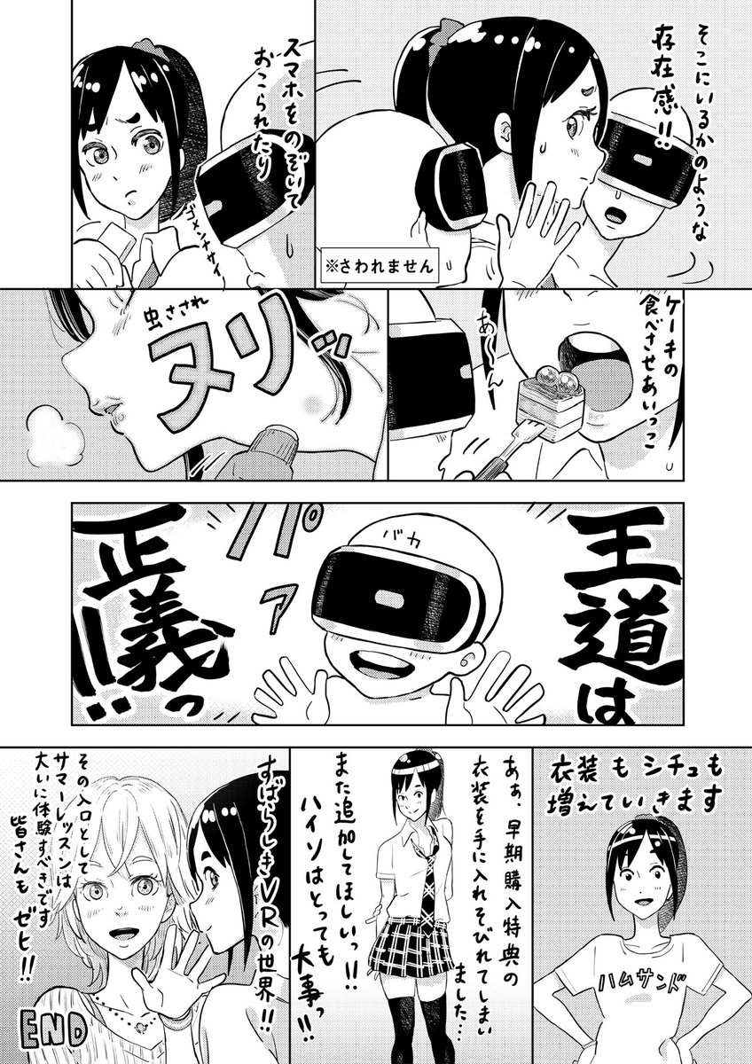 「サマーレッスンというのは、VRという技術で可能になった『新たな出会いの物語』だと思います。だからこそ、『まだ本当の人間にはなれないでいる彼女たちの、甘酸っぱいジレンマ』という情緒が匂い立っているのではないかと。そこを表現しているという点で、他にはない切り口の表現をこのマンガに見ました」