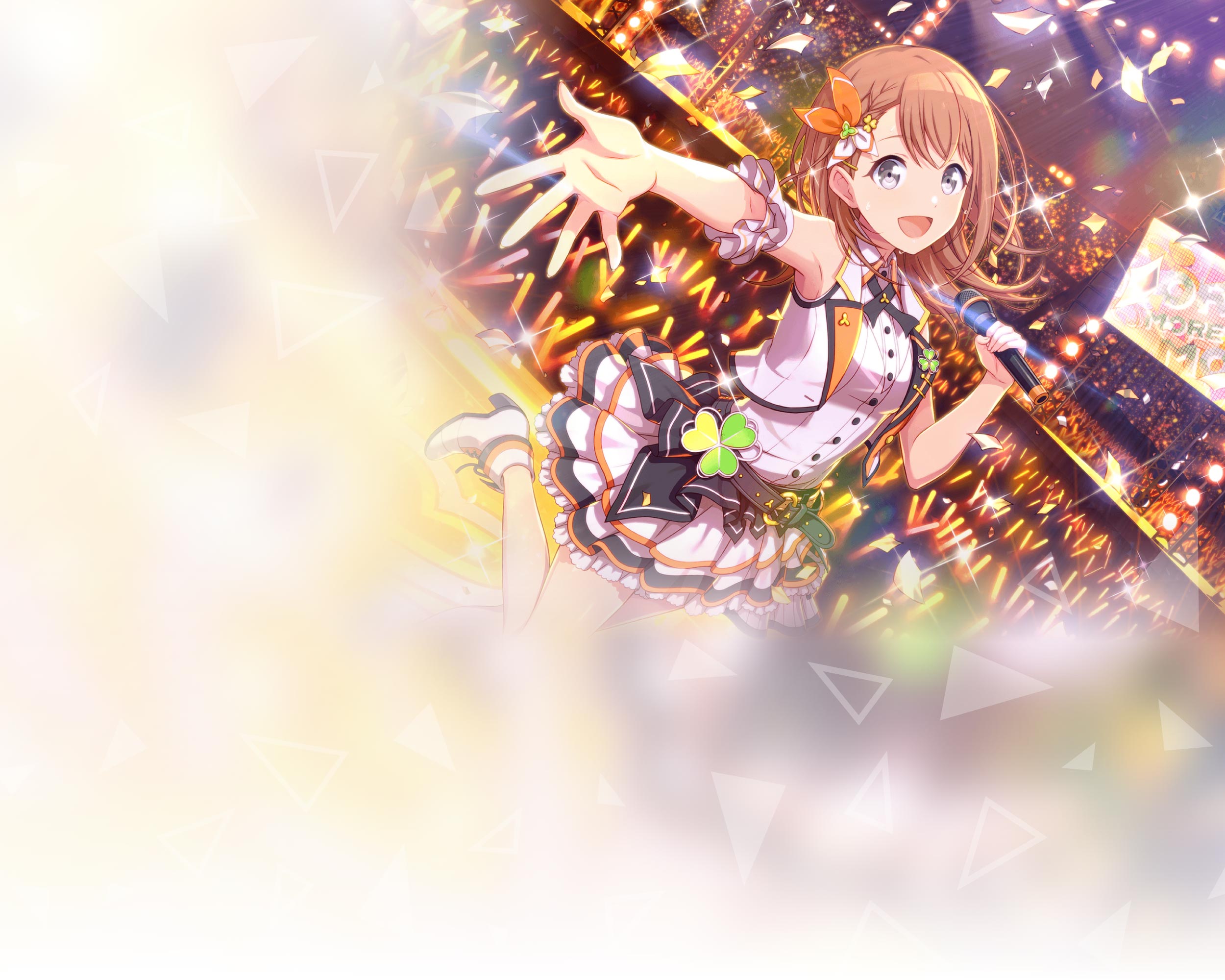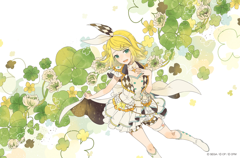 リンちゃんのシルエットに合わせ、モモジャンのモチーフでもあるクローバーをうまく使って画面レイアウトされていて素敵です。淡く優しいトーンの色使いで、モモジャンに寄り添うリンちゃんの優しさが伝わってきます。プロジェクトセカイ運営スタッフ