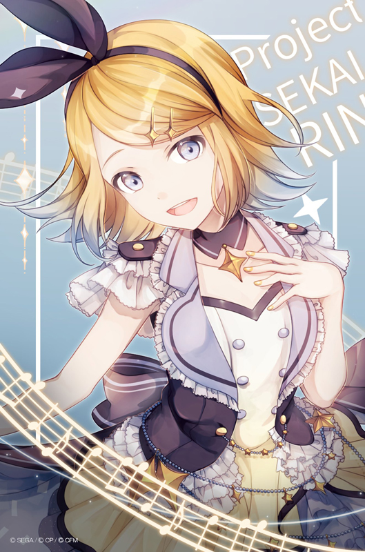 リンちゃんのシルエットに合わせ、モモジャンのモチーフでもあるクローバーをうまく使って画面レイアウトされていて素敵です。淡く優しいトーンの色使いで、モモジャンに寄り添うリンちゃんの優しさが伝わってきます。プロジェクトセカイ運営スタッフ