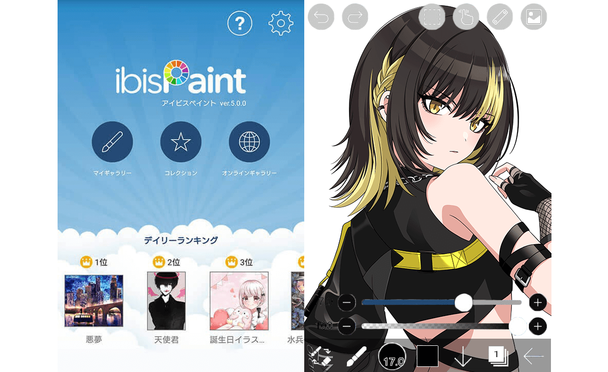 アイビスペイントとCLIP STUDIO PAINTは連携しており、アイビスペイントで描いた作品を書き出して、レイヤー構成などを保持したままCLIP STUDIO PAINTに読み込んで続きを描くこともできます。