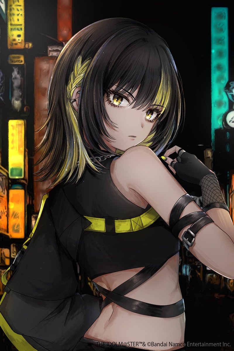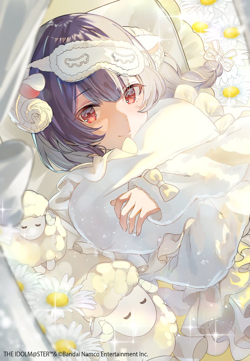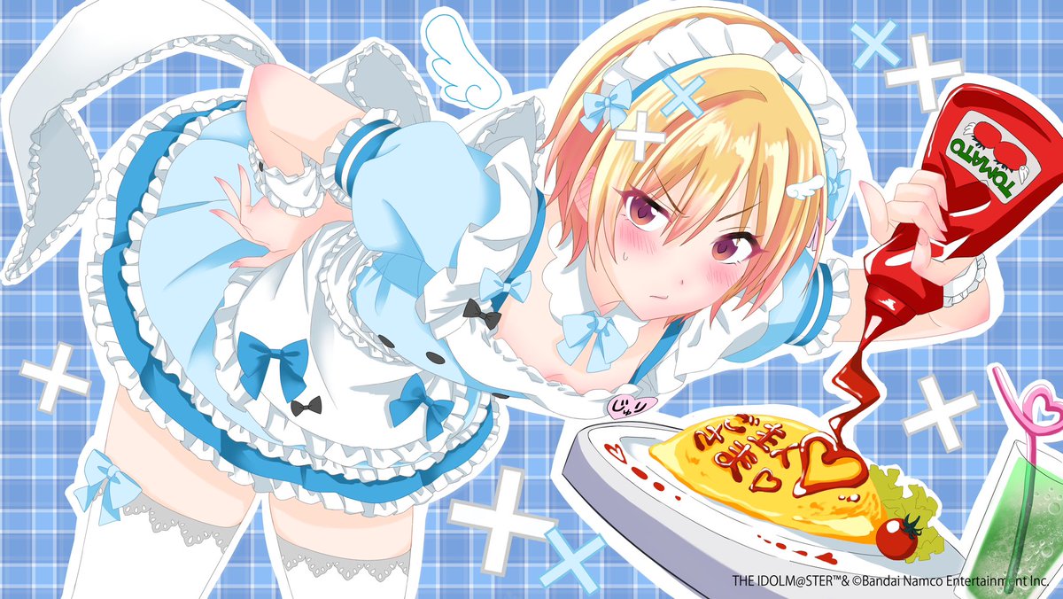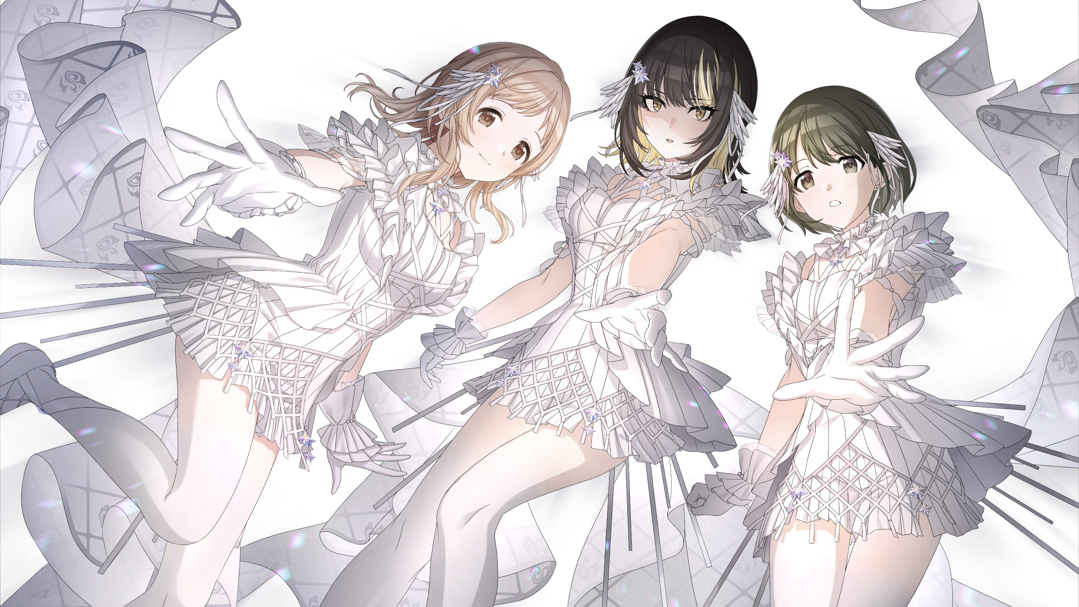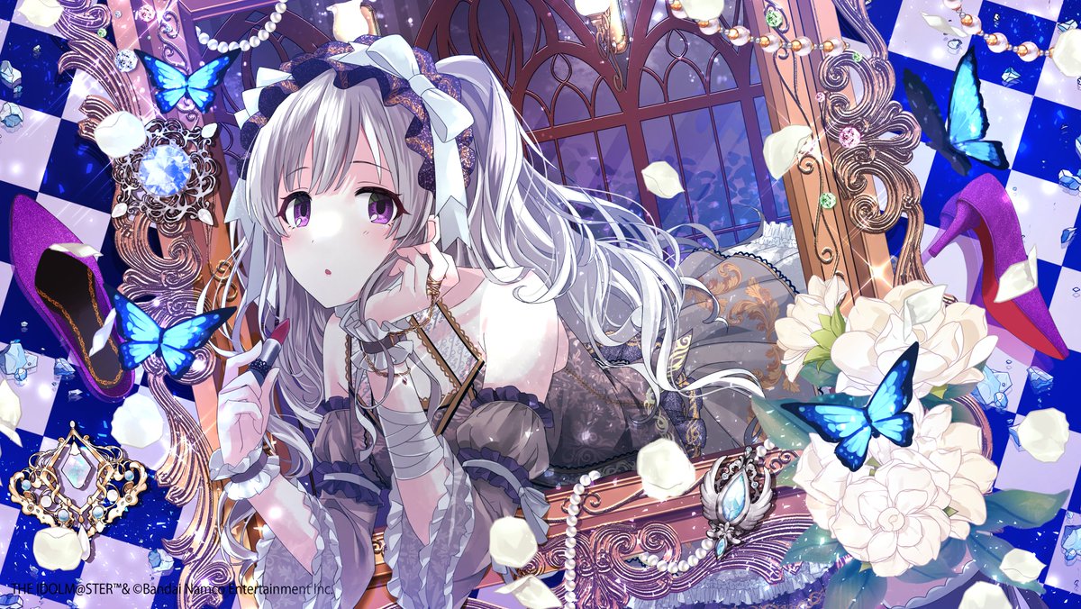 画面全体のざらざらとした筆致が特徴的で、油彩風の重みのある塗りが儚さを感じさせます。透明な天使たちも消え入りそうなイメージで、退廃的な印象が新鮮な一枚です。「シャイニーカラーズ」プロデューサー