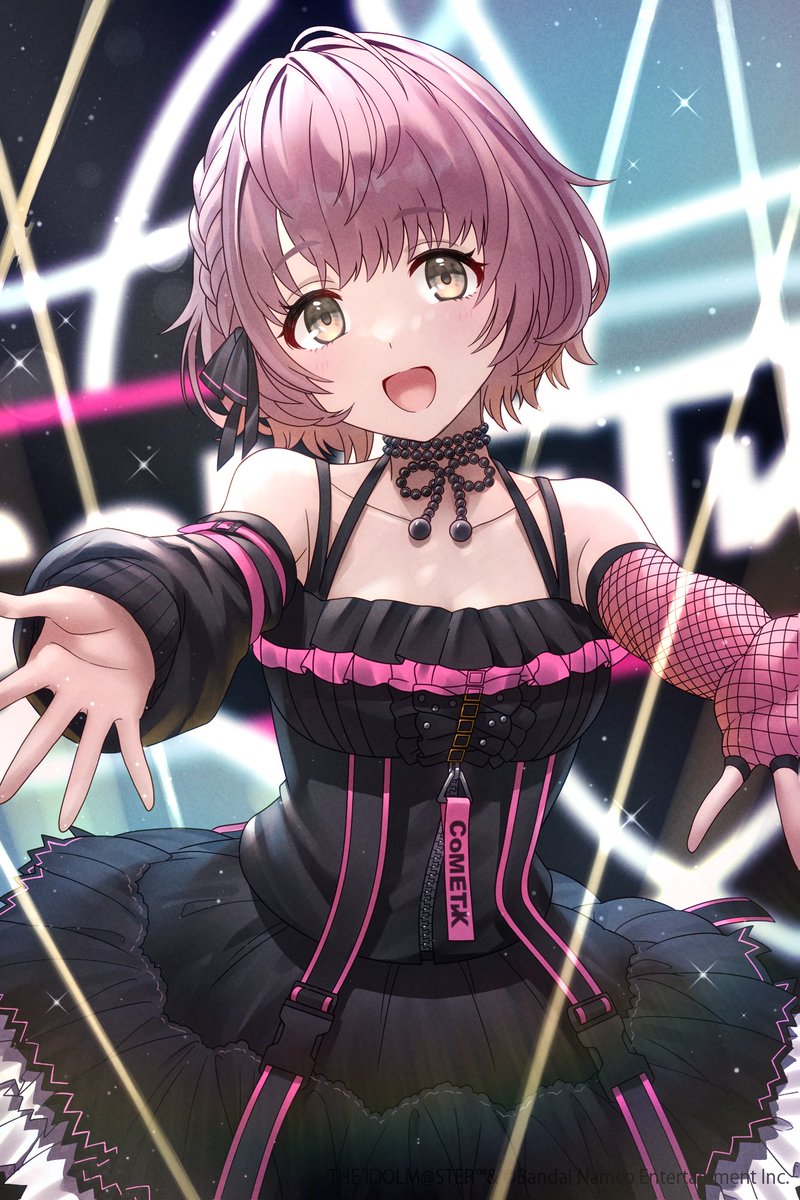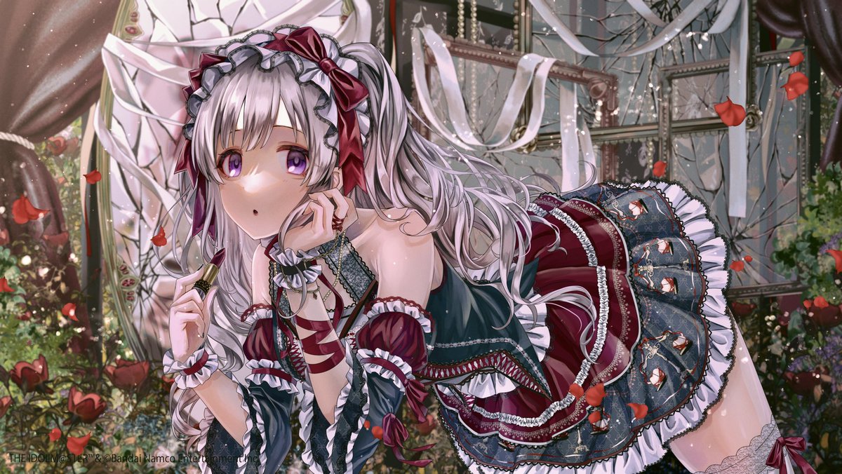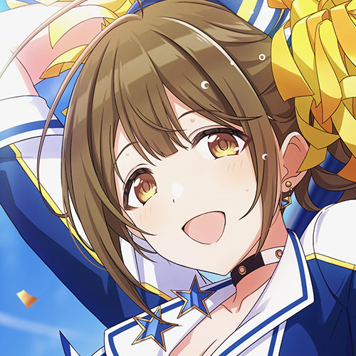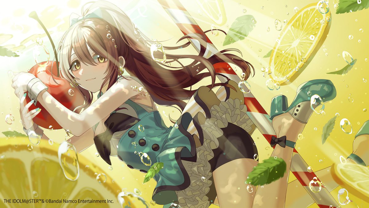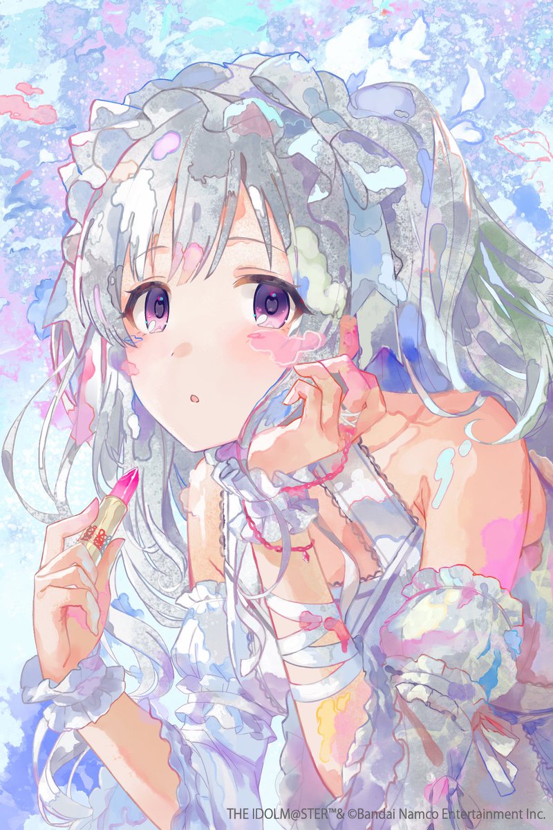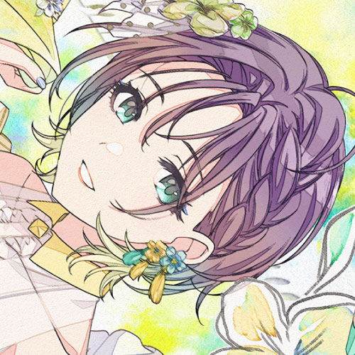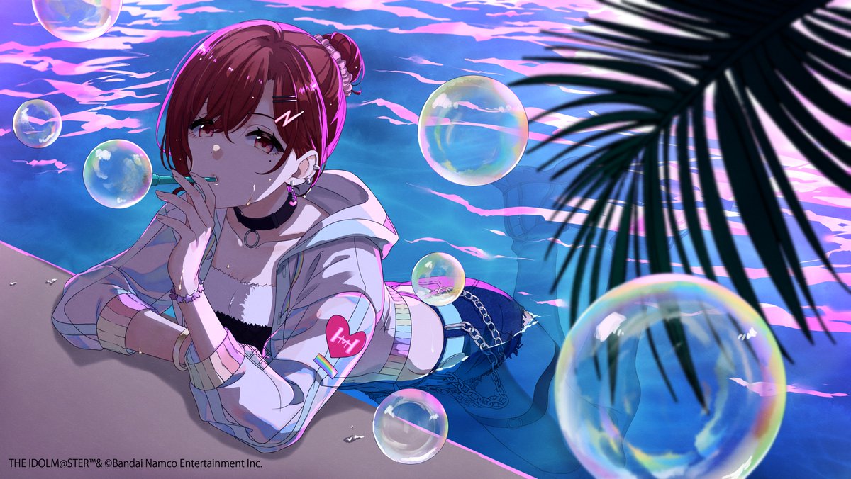 印象的な水彩風のタッチと、ピンクやブルーといった影色での遊びが印象的です。霧子が持つリップが最も彩度が高く、霧子の顔回りの印象が強まるのも工夫されているように思いました。「シャイニーカラーズ」プロデューサー