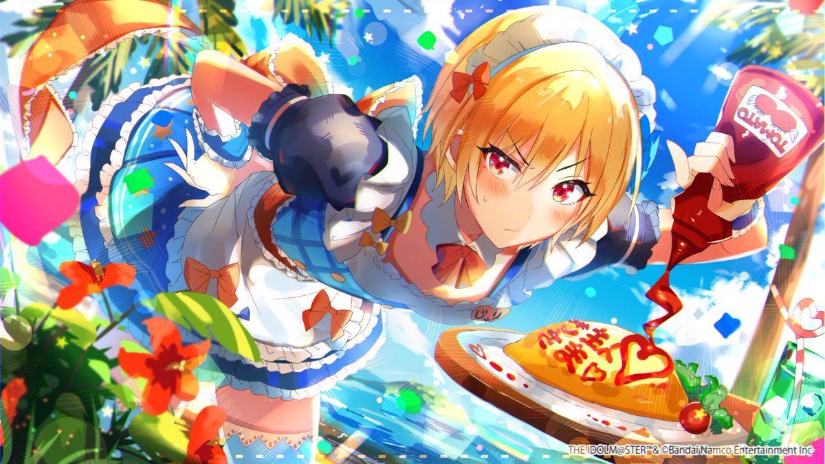 木漏れ日を浴びて、キャラクターの笑顔がより魅力的に感じられます。まわりの草木に埋もれない衣装の配色と、緑に包まれた七草にちかを引き立てるガーデンの魅せ方が素晴らしいです!セルシス