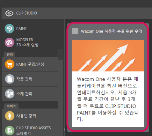 와콤 제품 등록에 따른 무료 기간 |
