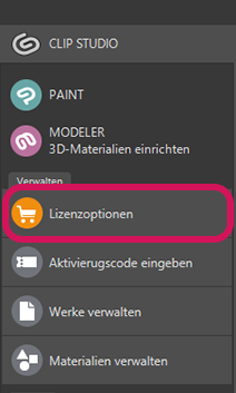 2. Nachdem du auf die neueste Version aktualisiert hast, starte CLIP STUDIO PAINT und klicke rechts auf dem Bildschirm auf [Lizenz erwerben] oder klicke im Menü auf der linken Seite auf [Lizenzoptionen].