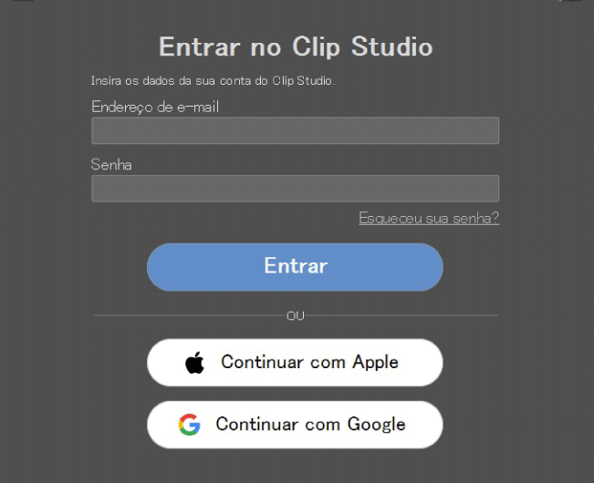 Você pode vincular sua conta Clip Studio à sua conta da Apple ou do Google. Saiba mais aqui.