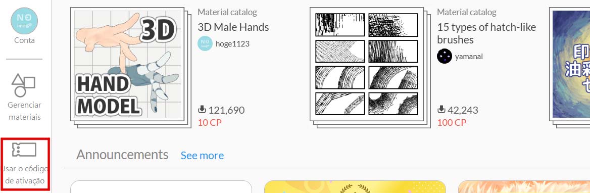 Observação: você pode usar o código de ativação recebido no e-mail com os detalhes da sua compra fazendo login em sua conta do Clip Studio.