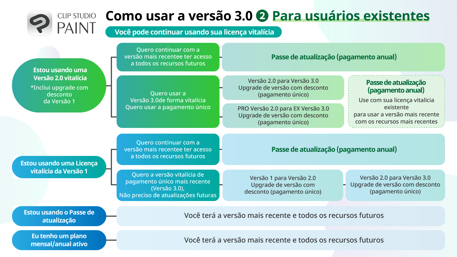 Você pode usar a Versão 3.0 do Clip Studio Paint ao comprar qualquer um dos seguintes.