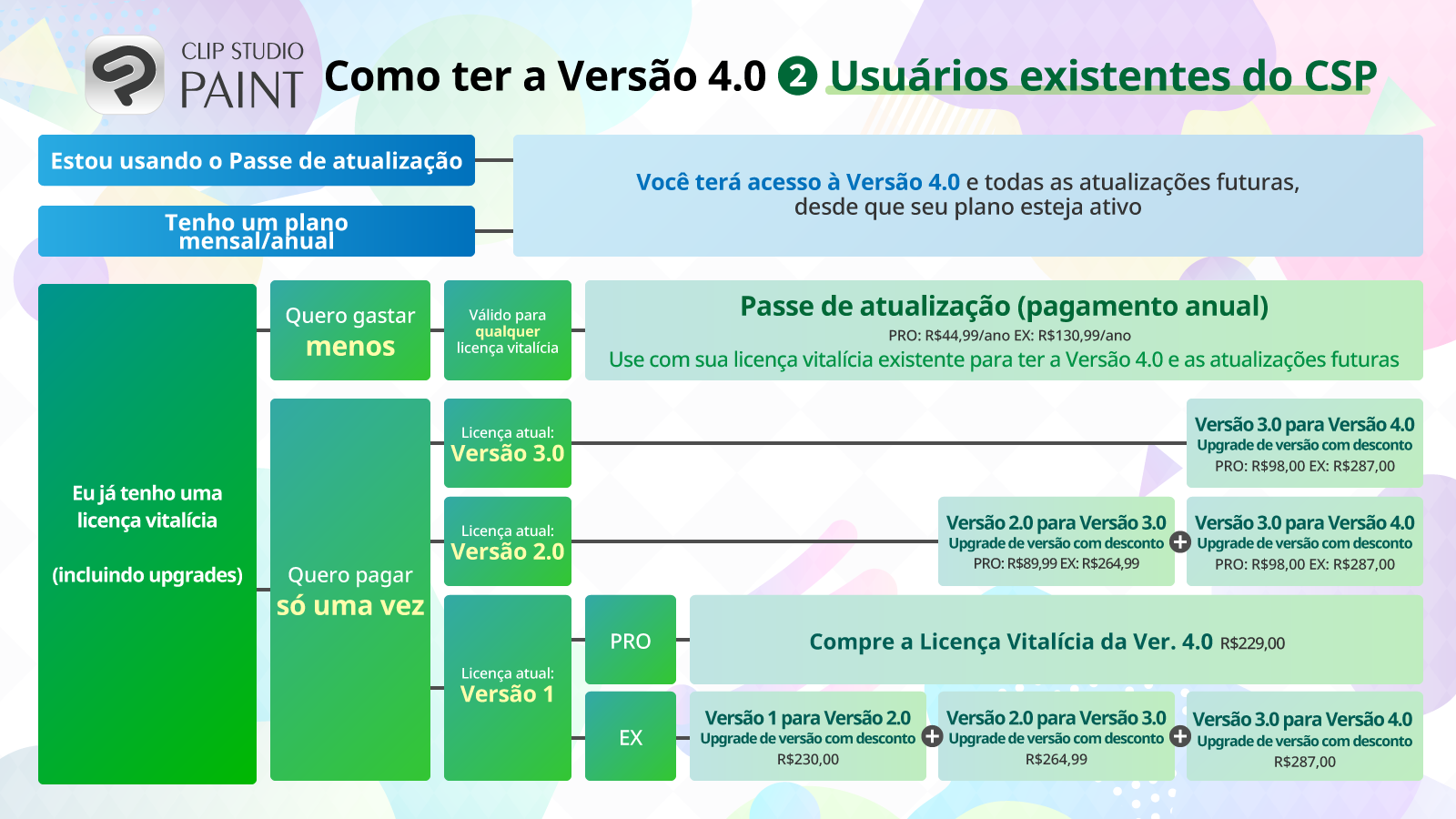 - Compre o upgrade com desconto da Versão 3.0 > Versão 4.0 ou use o Passe de atualização para usar a Versão 4.0.