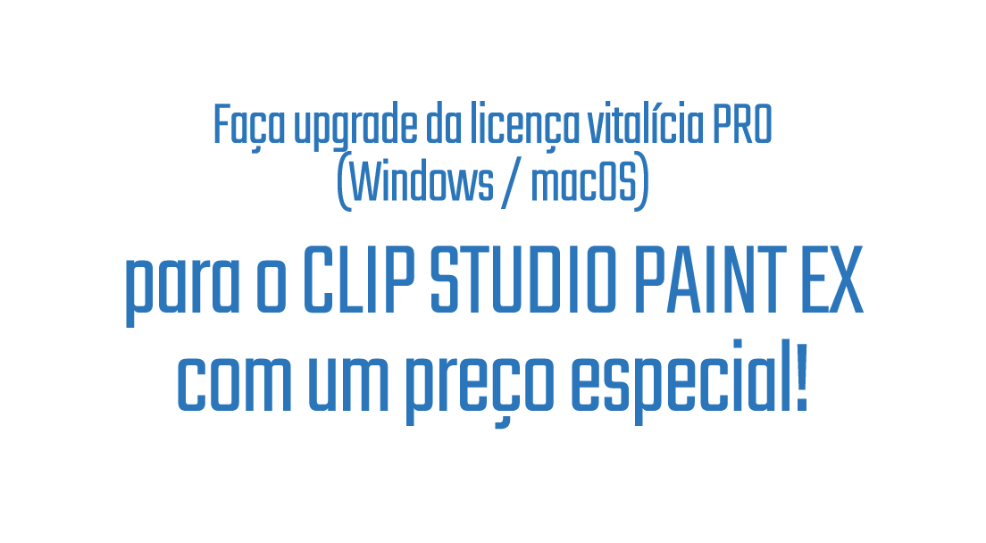 Tem uma licença vitalícia do Clip Studio Paint PRO para Windows ou macOS? Então, faça o upgrade para o Clip Studio Paint EX (licença vitalícia) com um desconto especial!