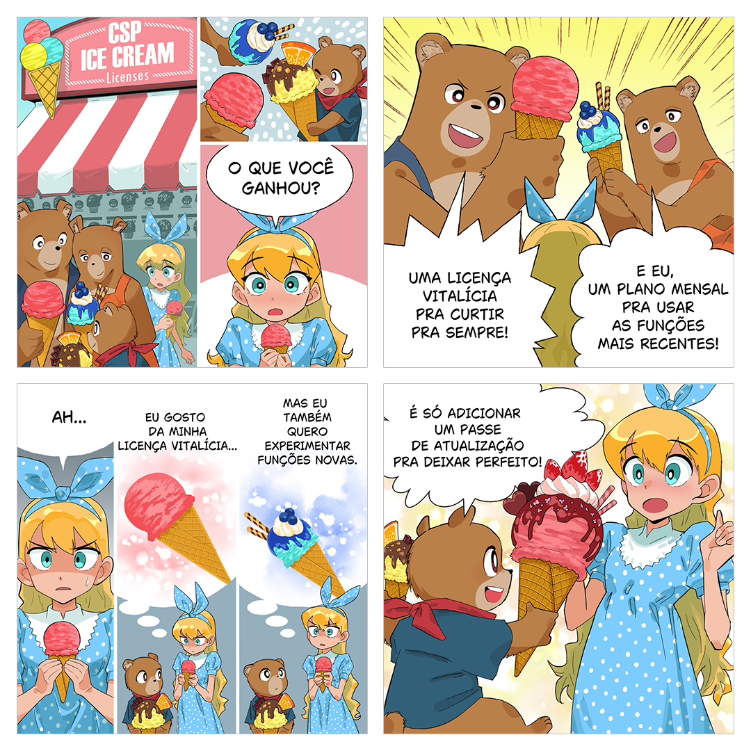 Se você tiver a licença vitalícia, o Passe de atualização é a maneira mais econômica de usar os recursos mais recentes do Clip Studio Paint!