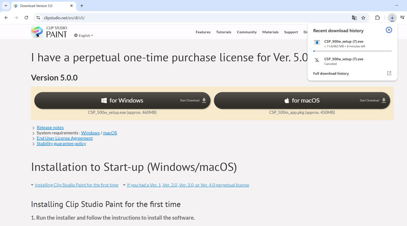 首次安装Clip Studio Paint