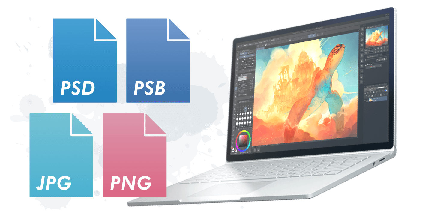 概念藝術需要不斷進行團隊回饋與修改,因此雲端共有功能可幫助遠端工作與自由接案的藝術家順利合作。此外,將數據備份至雲端還能防止電腦故障導致的資料遺失。像是CLIP STUDIO PAINT等應用程式,還具備能將所選的檔案自動同步至雲端的功能。