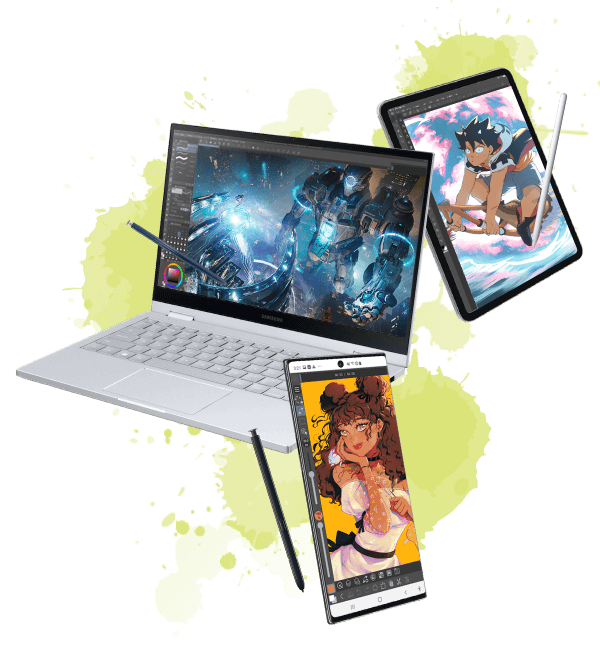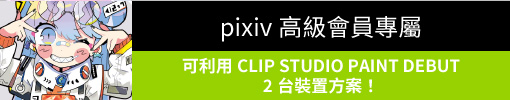 加入繪圖社群服務[pixiv]的高級會員,即可利用CLIP STUDIO PAINT DEBUT 2台裝置方案(從Windows/macOS/iPad/iPhone/Android任選兩台裝置)。