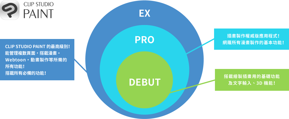 CLIP STUDIO PAINT DEBUT未單獨進行應用程式的販售,為附屬於商品的專用型號。