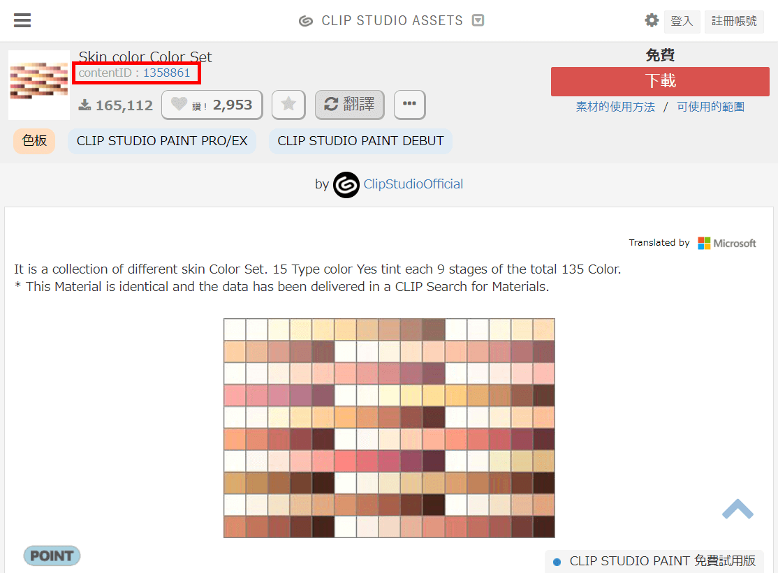 刊載於ASSETS的素材會顯示CONTENT ID。CONTENT ID可以用於檢索素材。在SNS上介紹素材的時候歡迎多加利用。